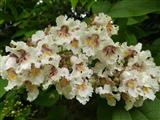 Le Catalpa, bel arbre à grandes feuilles. sa belle silouhette et ses magnifiques fleurs en font un hôte de choix dans un grand jardin. Photos : Jeanine